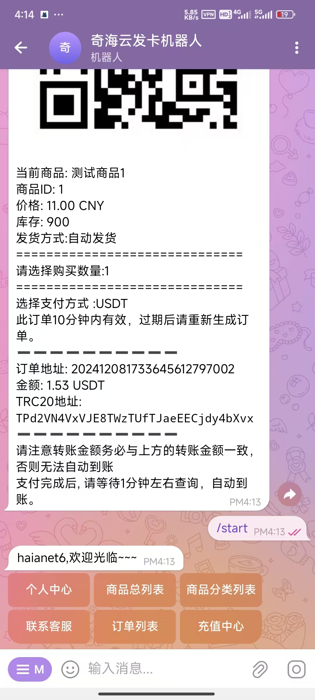 基于独角数卡的机器人,在原有的基础上增加了一个网页端后台,可以单独查看TG订单和管理TG用户,支持给TG用户加款。