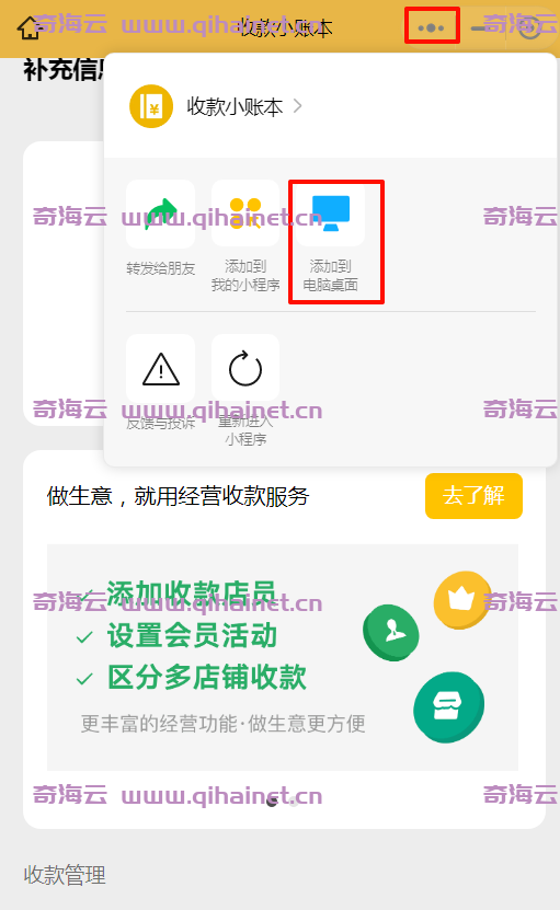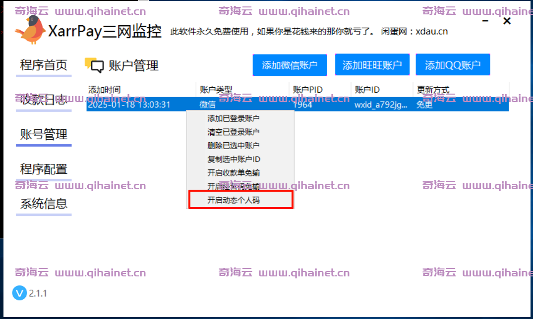 1.请按照下图所示,将收款小账本添加到桌面。 2.在商户后台添加通道。 3.这里的绑定客户端名称请自定义填写。 sid填入随便的数字,例如123 4.到三网监控>账号管理,右键开启动态个人码,填写刚刚绑定客户端名称填写的内容。 5.回到通道管理刷新页面,会看到sid已经变更为真实sid,此时通道就配置成功。