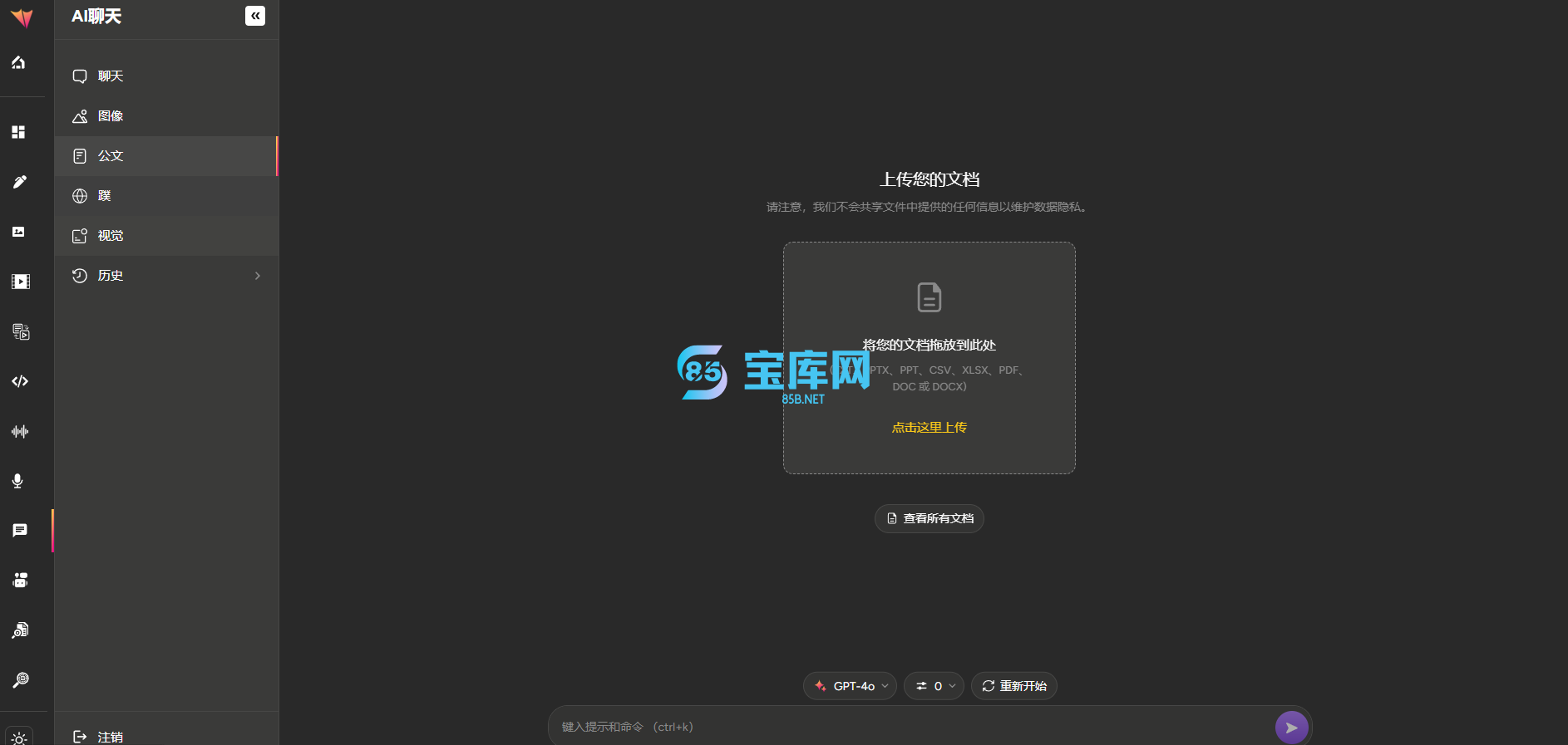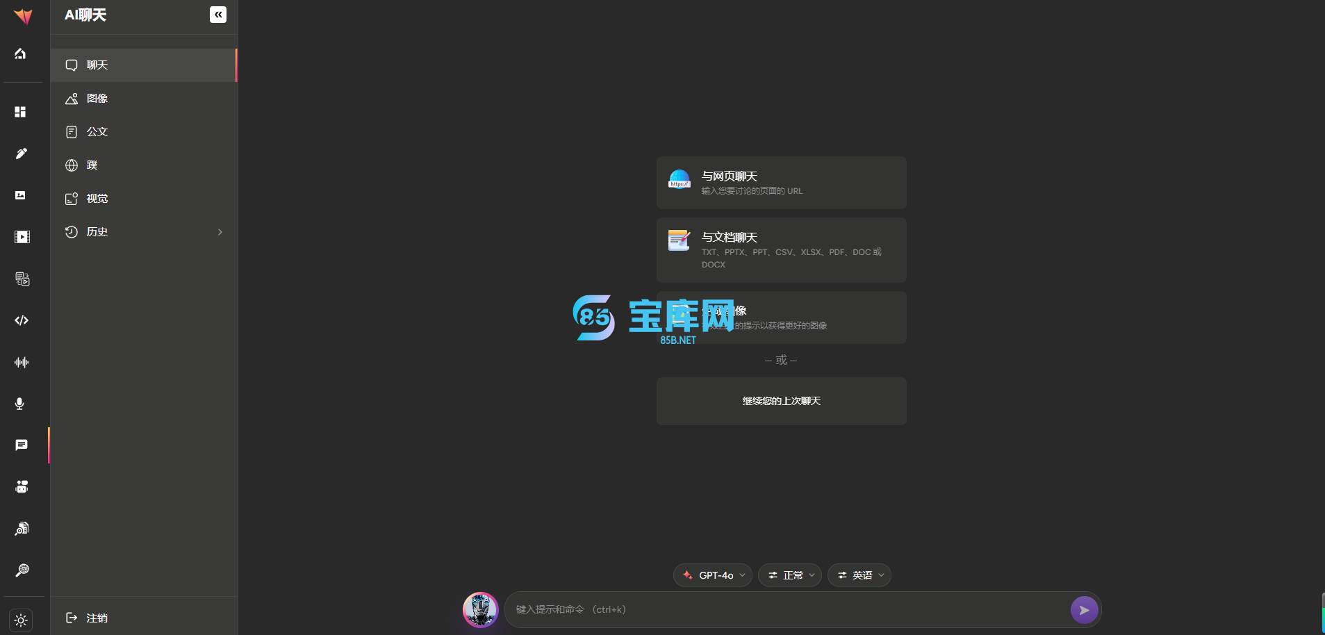 提供商以支持各种功能,包括模板、代码、长文、基本聊天、文档聊天、网络聊天、视觉聊天和外部聊天机器人功能。