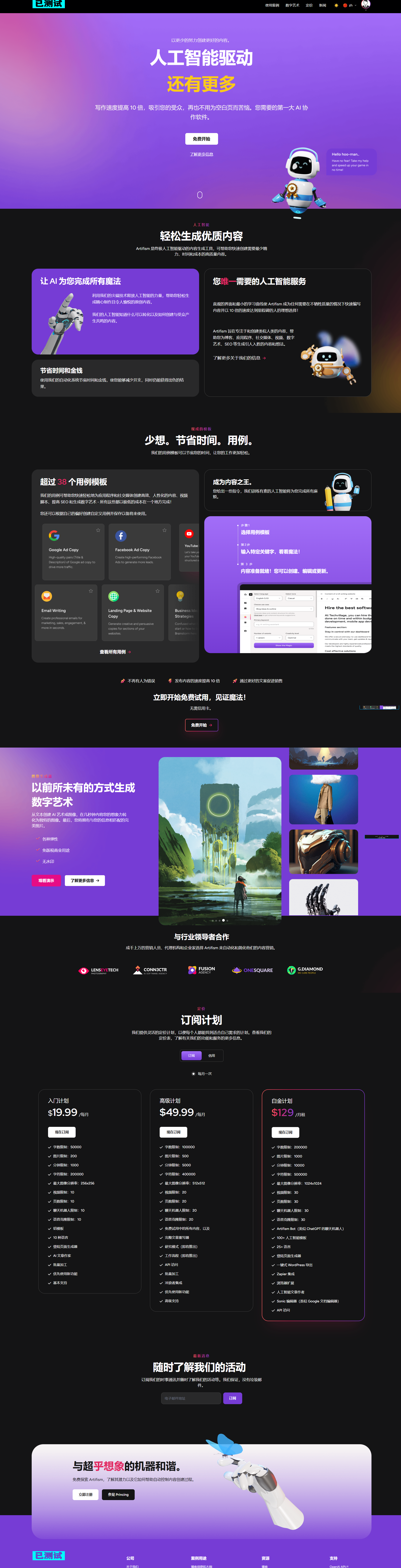 人工智能内容、图像、视频、聊天、聊天机器人、画外音和代码生成