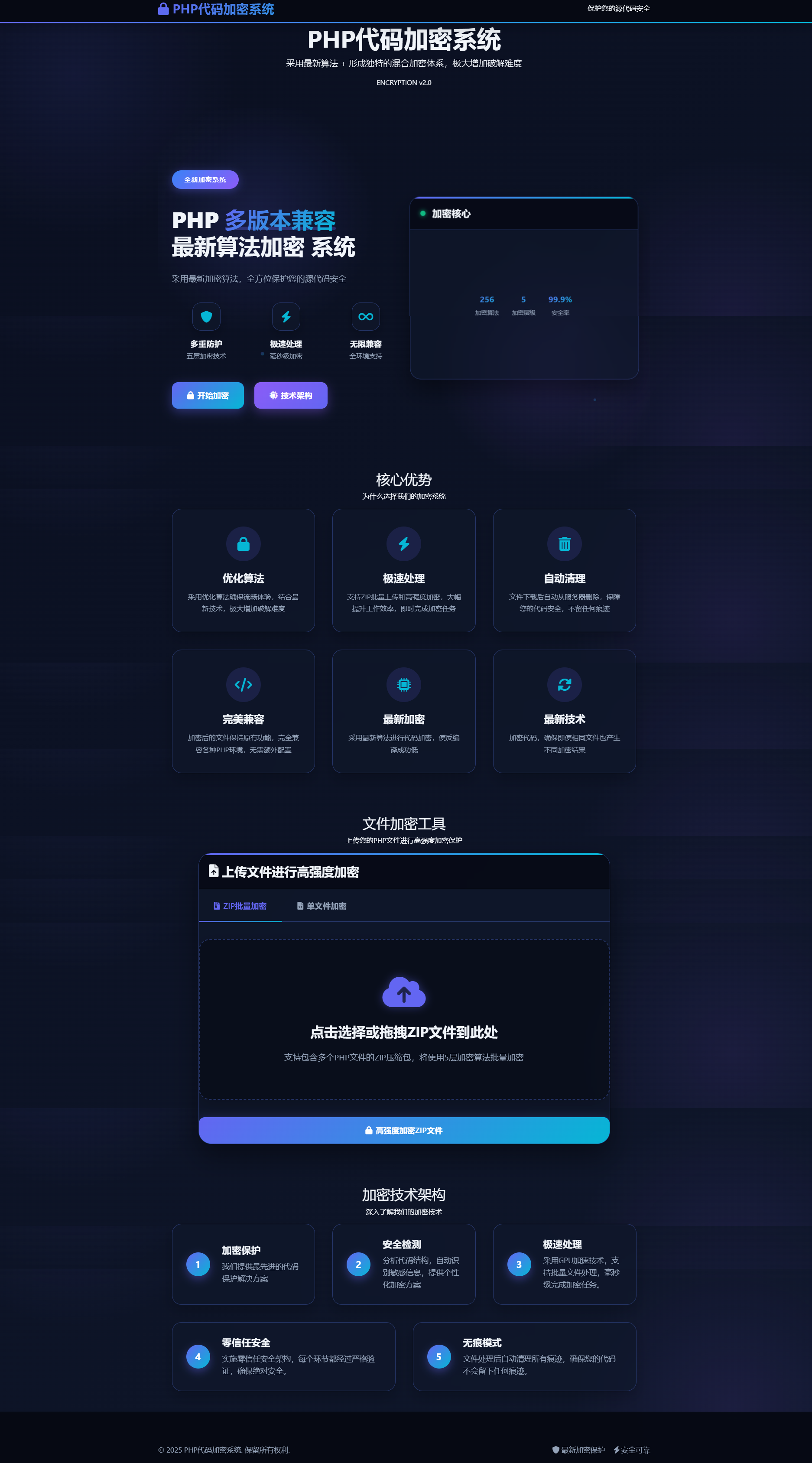 批量处理能力:支持ZIP文件批量上传和加密,可同时处理多个PHP文件